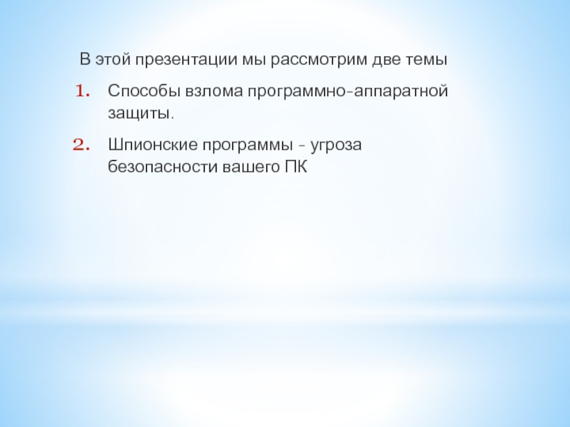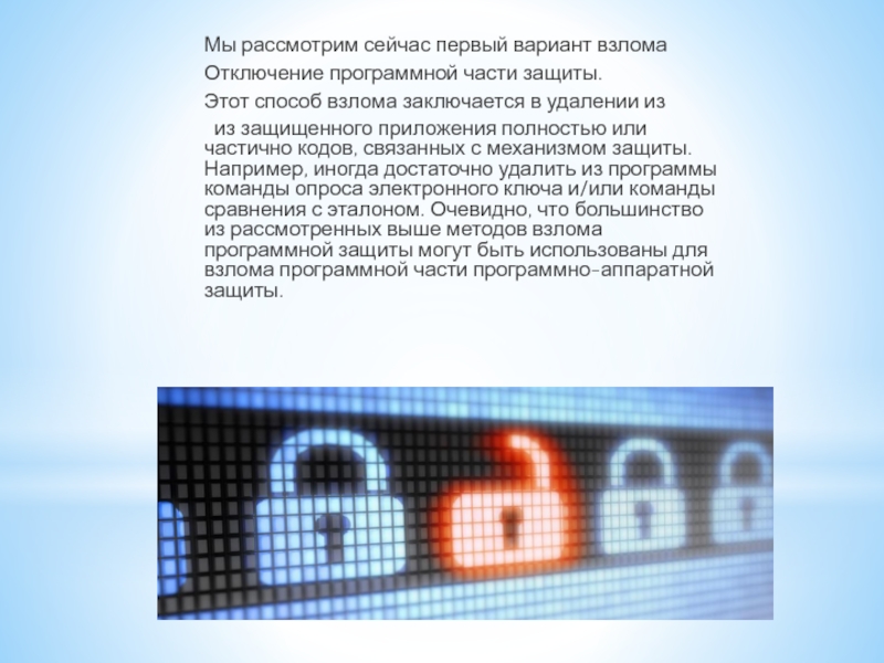 Слайд 3Мы рассмотрим сейчас первый вариант взлома