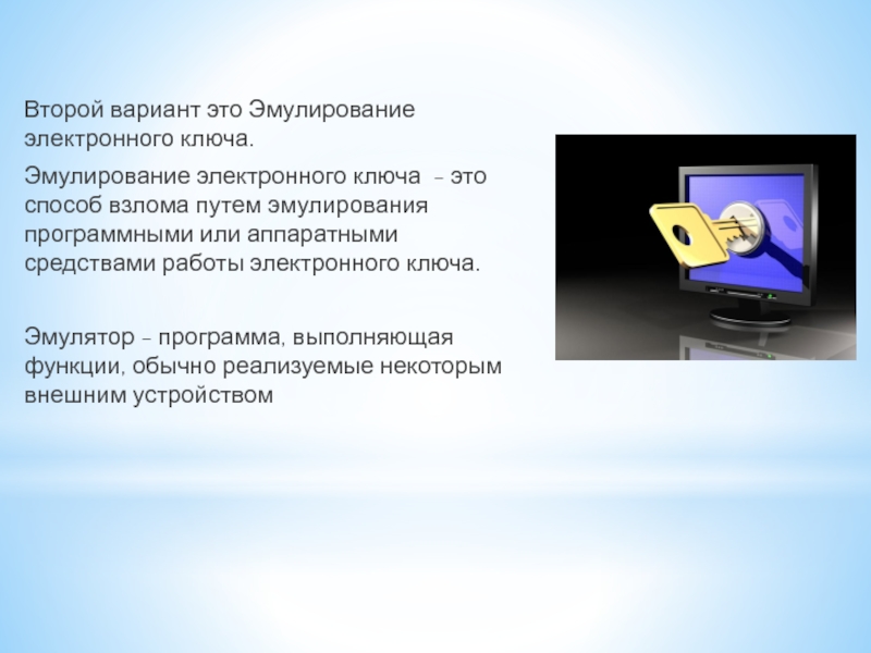 Слайд 4Второй вариант это Эмулирование электронного ключа.