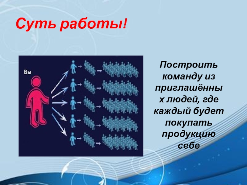 Построить команду из приглашённых людей, где каждый будет покупать продукцию