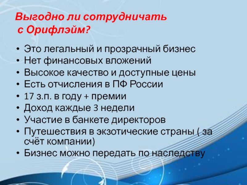 с Орифлэйм?