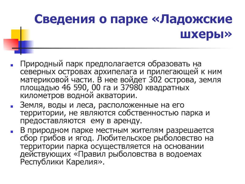Изучить информацию о Ладожском озере и парке «Ладожские шхеры» в литературных источниках и Интернете.