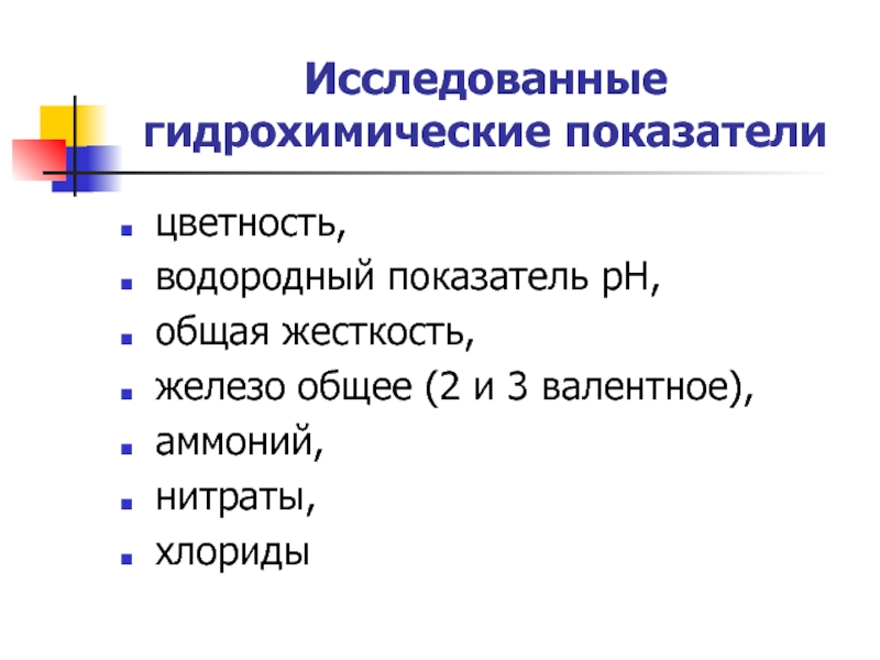 Подобрать гидрохимические показатели, необходимые для исследования.