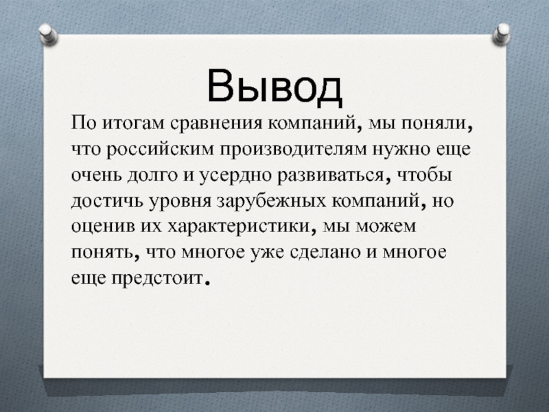 По итогам сравнения компаний, мы поняли, что российским производителям нужно еще