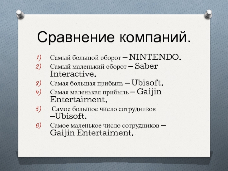 Слайд 13Сравнение компаний.
