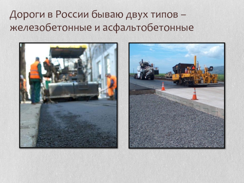 Слайд 3Дороги в России бываю двух типов – железобетонные и асфальтобетонные