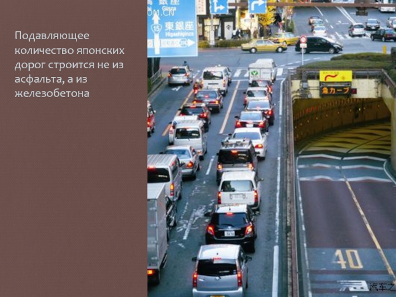 Слайд 10Подавляющее количество японских дорог строится не из асфальта, а из железобетона