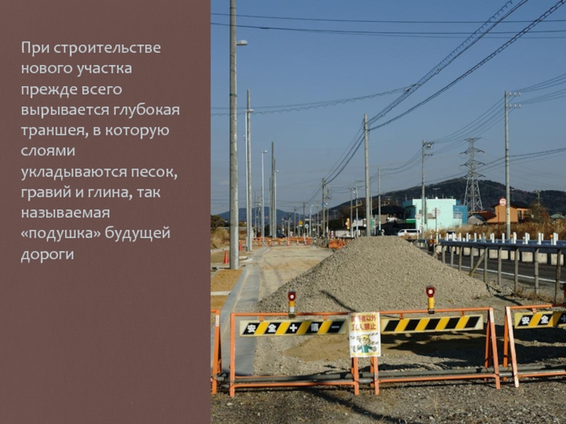 Слайд 12При строительстве нового участка прежде всего вырывается глубокая траншея, в которую
