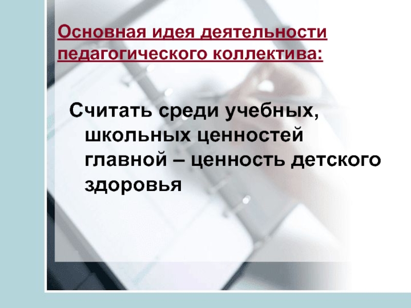 Слайд 2Основная идея деятельности педагогического коллектива: