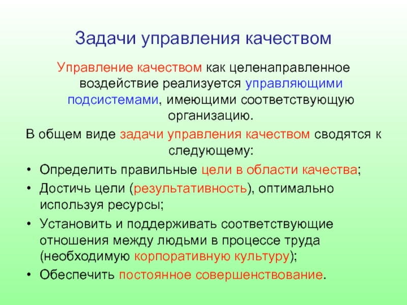 Управление качеством как целенаправленное воздействие реализуется управляющими подсистемами, имеющими