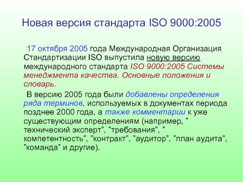 Слайд 4Новая версия стандарта ISO 9000:2005