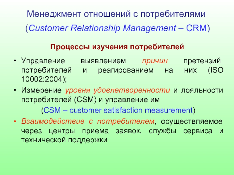выявлением причин претензий потребителей и реагированием на них (ISO 10002:2004);