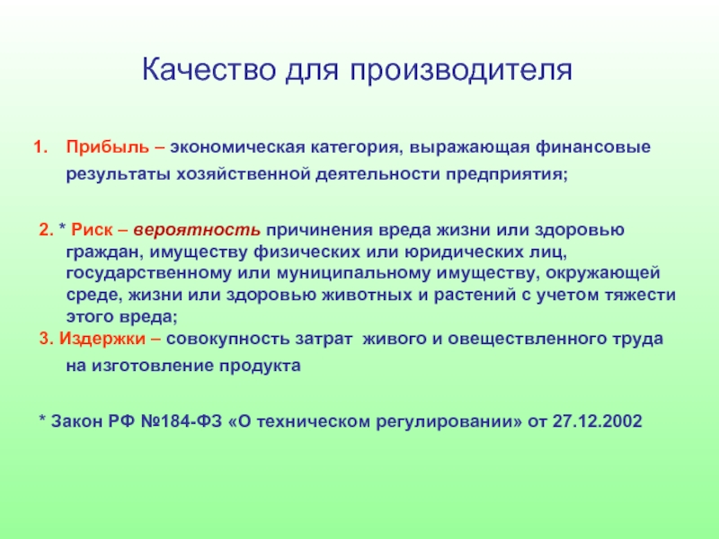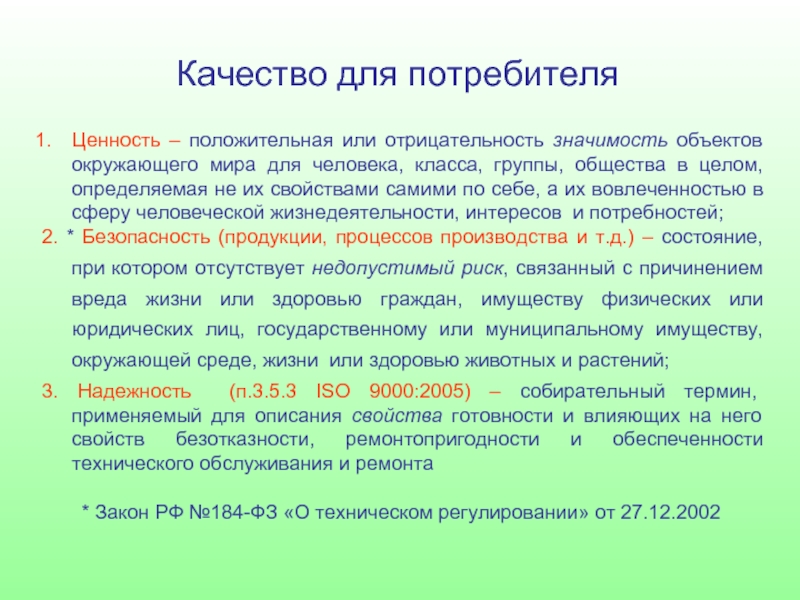 Качество – это способность продукта (сервиса) удовлетворять потребности, неизменно соответствуя