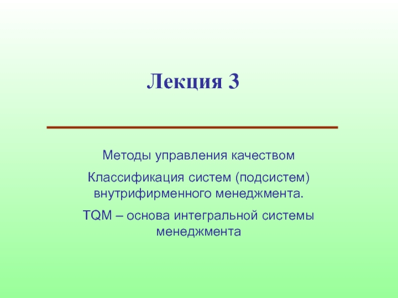 Классификация систем (подсистем) внутрифирменного менеджмента.