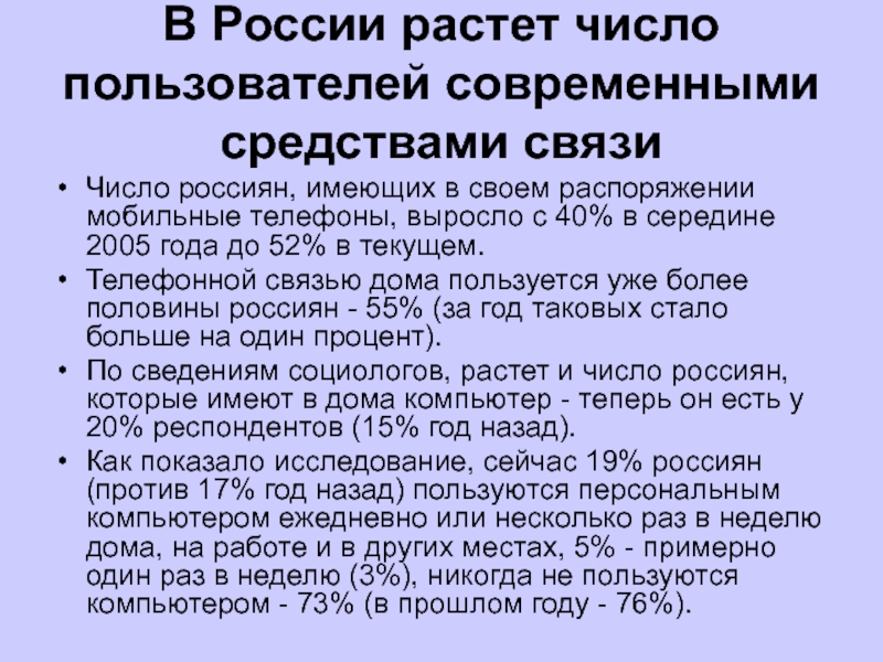 Проникновение сотовой связи в России составило 87%, а в Москве и Санкт-Петербурге уже достигло рубеж в 100%.