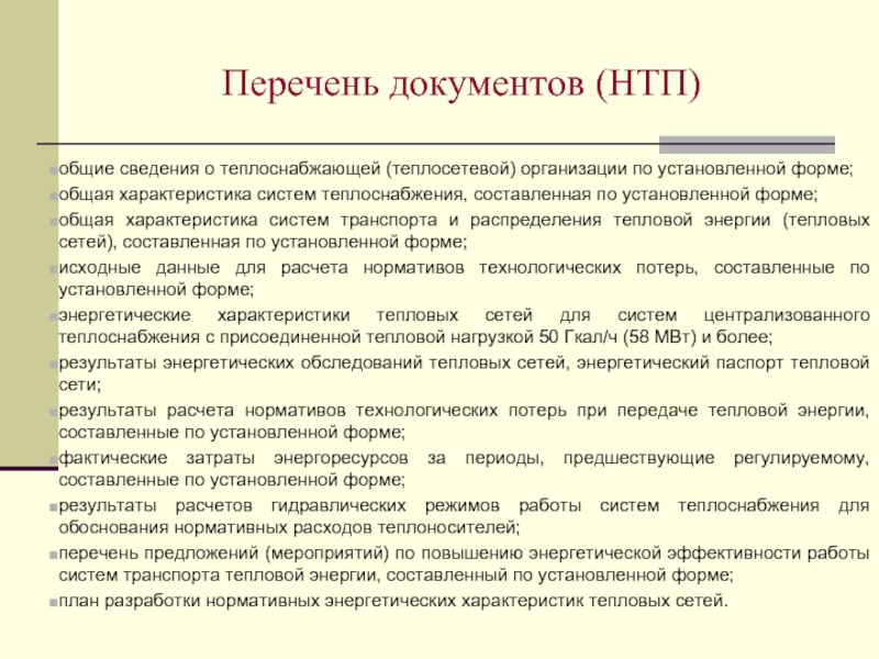план разработки нормативных энергетических характеристик тепловых сетей.