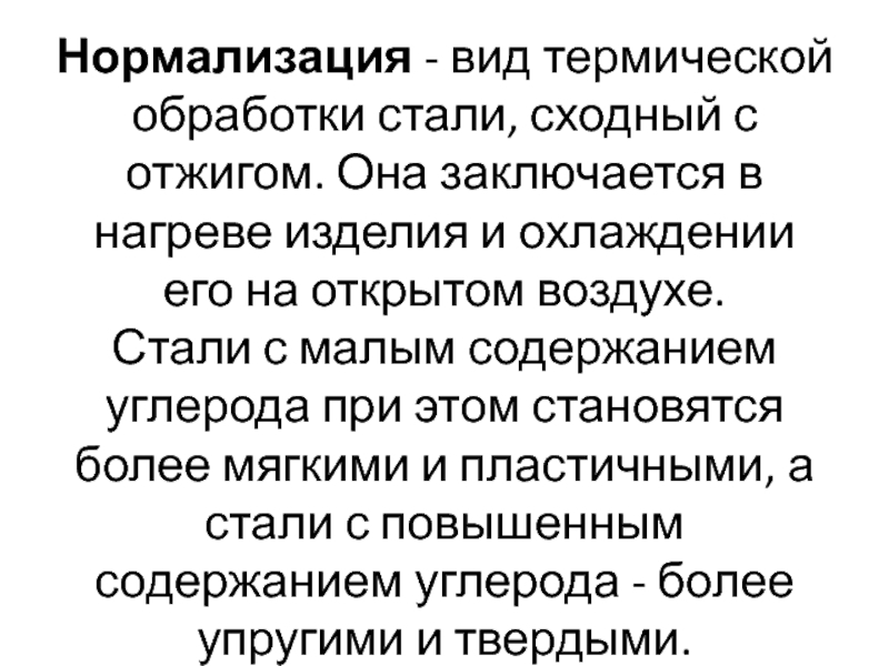 Слайд 20Нормализация - вид термической обработки стали, сходный с отжигом. Она заключается