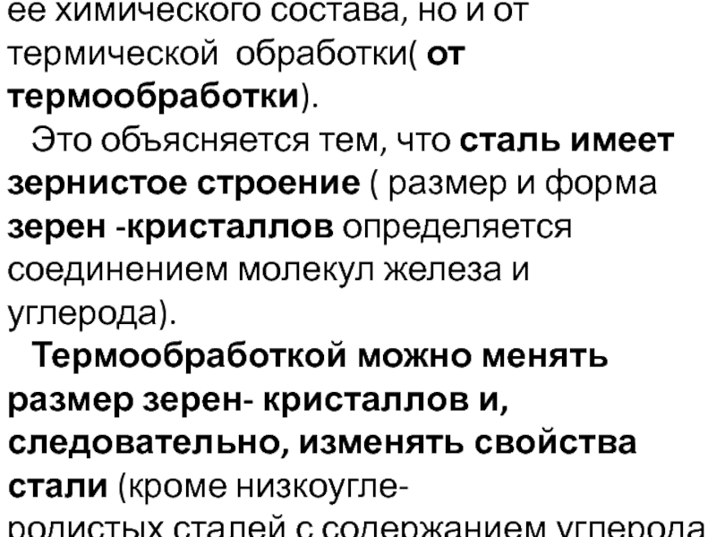 Слайд 4 Свойства стали зависят не только от её химического состава,