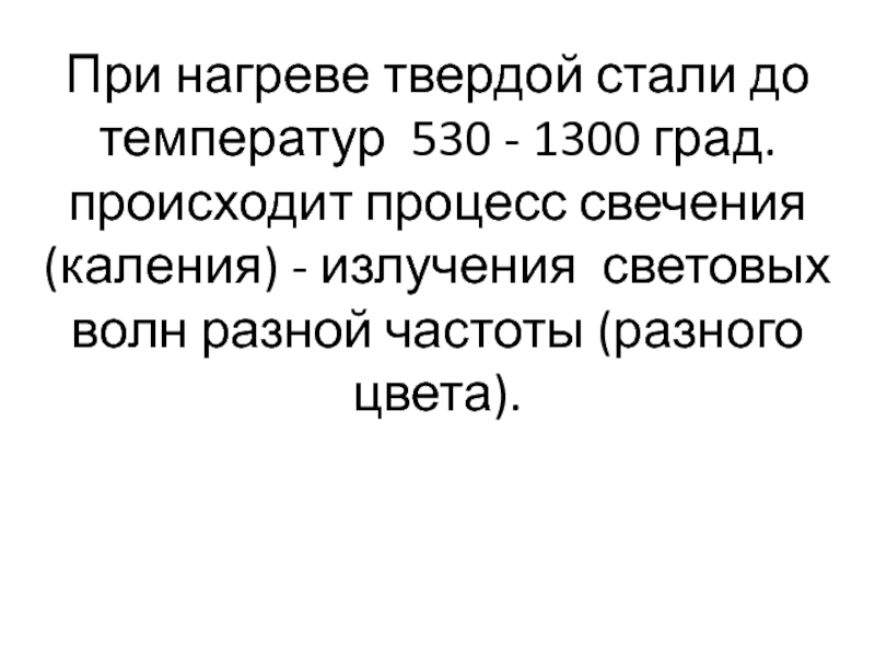 Слайд 10При нагреве твердой стали до температур 530 - 1300 град. происходит