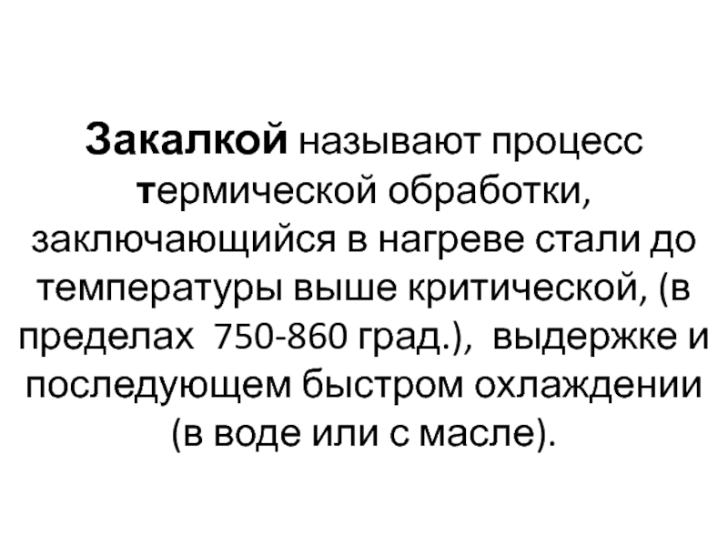 Слайд 17Закалкой называют процесс термической обработки, заключающийся в нагреве стали до температуры