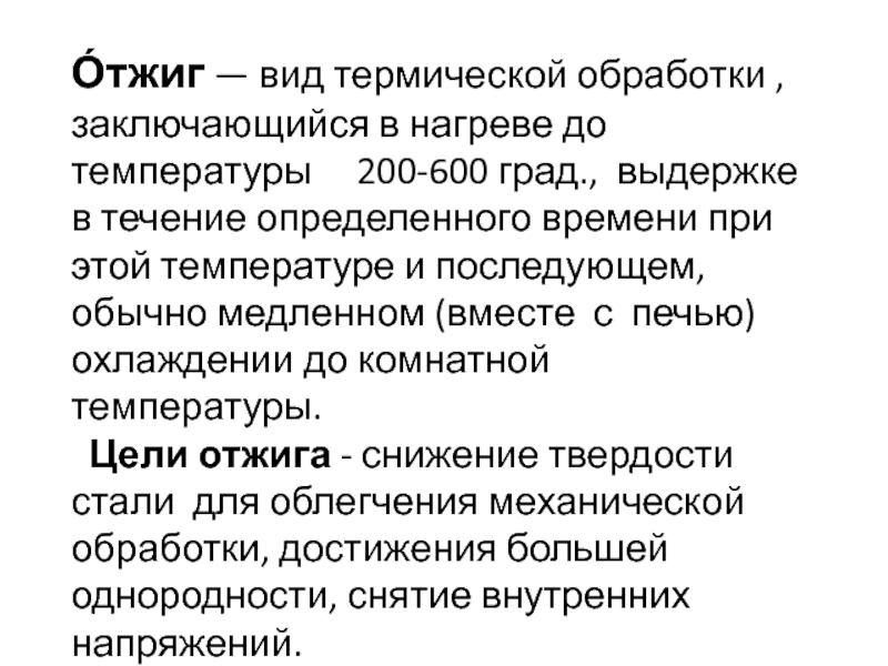 Слайд 19О́тжиг — вид термической обработки , заключающийся в нагреве до температуры