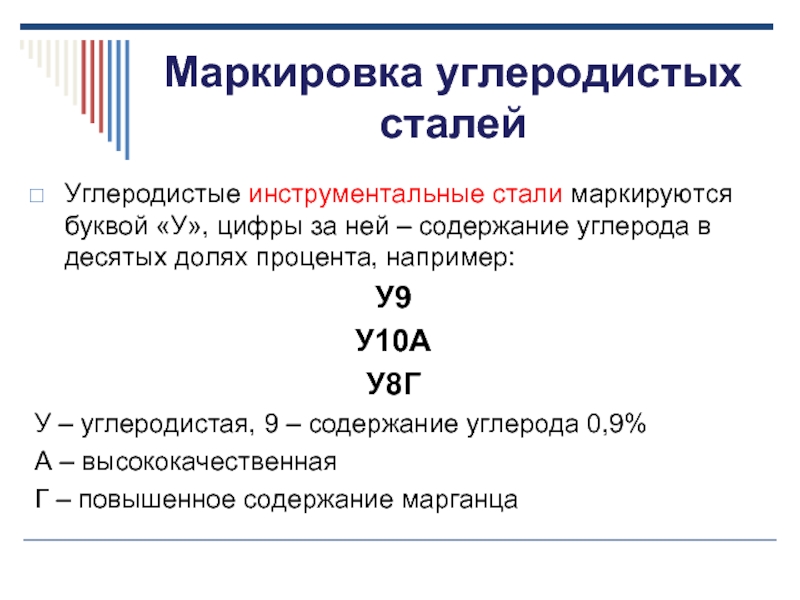 Углеродистые инструментальные стали маркируются буквой «У», цифры за ней