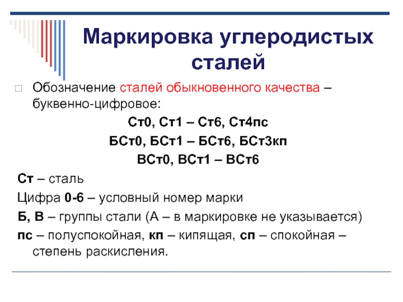 Обозначение сталей обыкновенного качества – буквенно-цифровое: