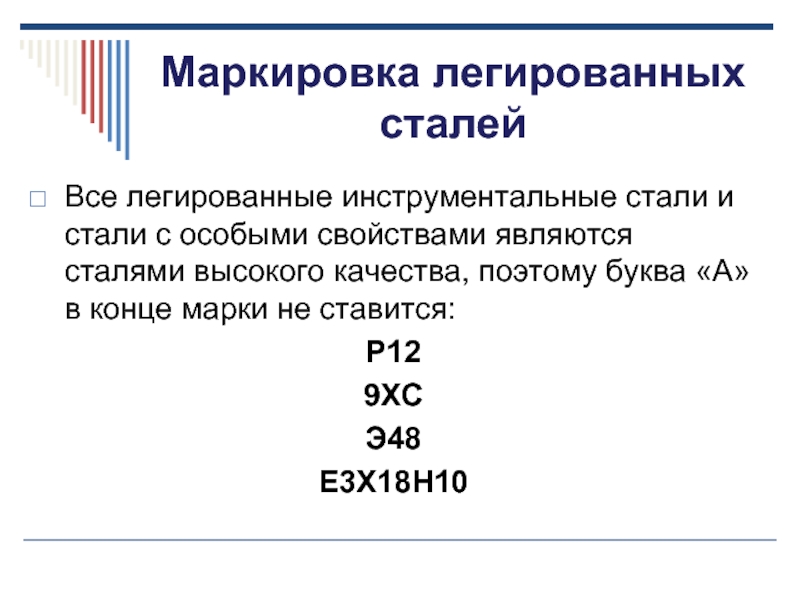Легирующие элементы в маркировке указываются буквами русского алфавита:
