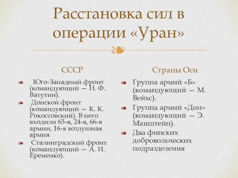 Слайд 15Расстановка сил в операции «Уран»