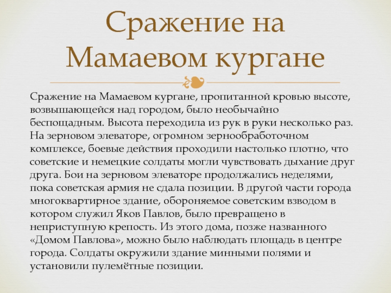 Сражение на Мамаевом кургане, пропитанной кровью высоте, возвышающейся