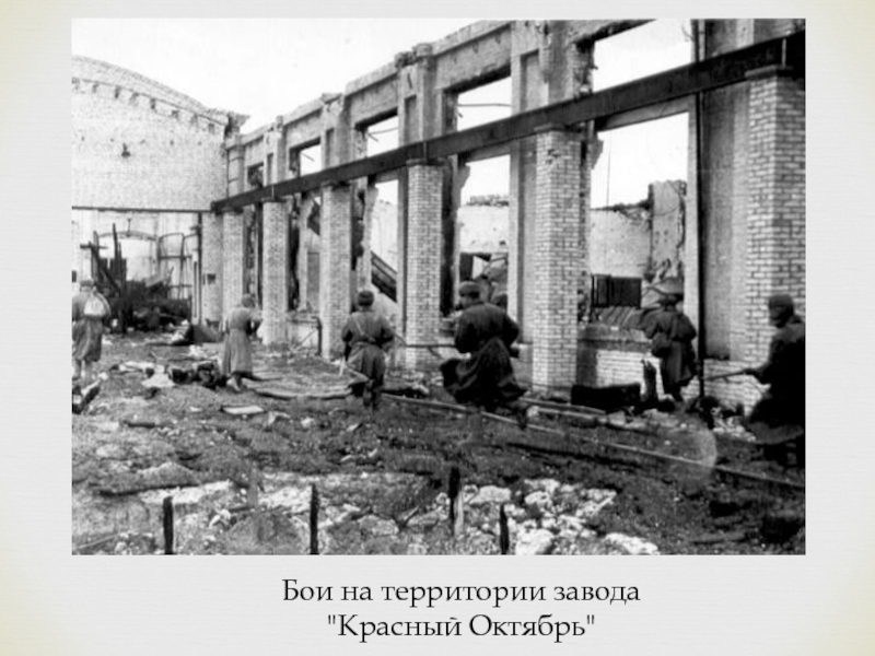 Сражения за завод Красный Октябрь, тракторный завод и артиллерийский завод «Баррикады» стали известны на весь мир. Пока советские солдаты продолжали защищать свои позиции, ведя огонь по немцам, рабочие заводов и фабрик ремонтировали повреждённые советские танки и оружие в непосредственной близости от поля боя, а иногда и на самом поле боя.