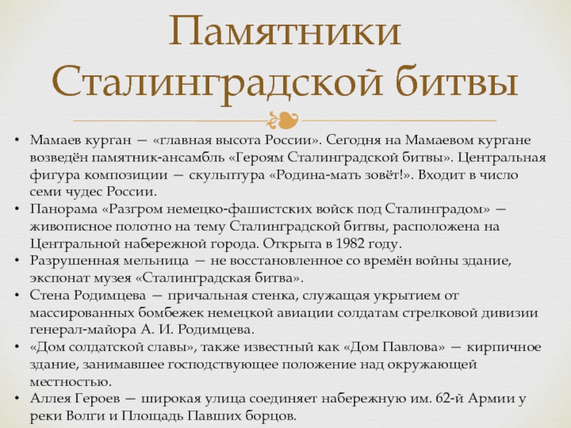 Слайд 27Памятники Сталинградской битвы
