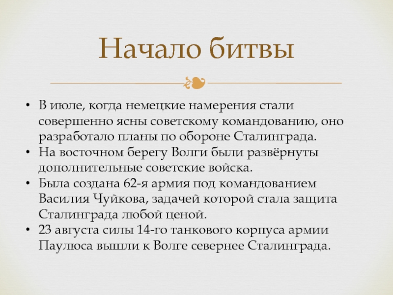 23 августа силы 14-го танкового корпуса армии Паулюса вышли к Волге севернее Сталинграда.
