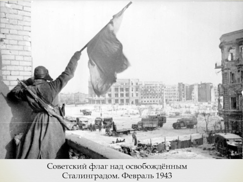 Слайд 23Советский флаг над освобождённым Сталинградом. Февраль 1943