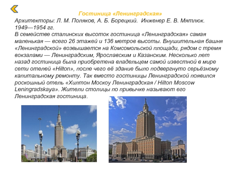 Первоначальный проект здания не имел шпиля, на крышу вместо него должны были поставить памятник Ломоносову. Архитекторы, показывая чертежи Сталину, намекнули, что скульптура может получить портретное сходство с вождём. Однако Иосиф Виссарионович распорядился соорудить вместо статуи шпиль, чтобы верхняя часть здания МГУ была похожа на остальные семь высоток, строившихся в столице.