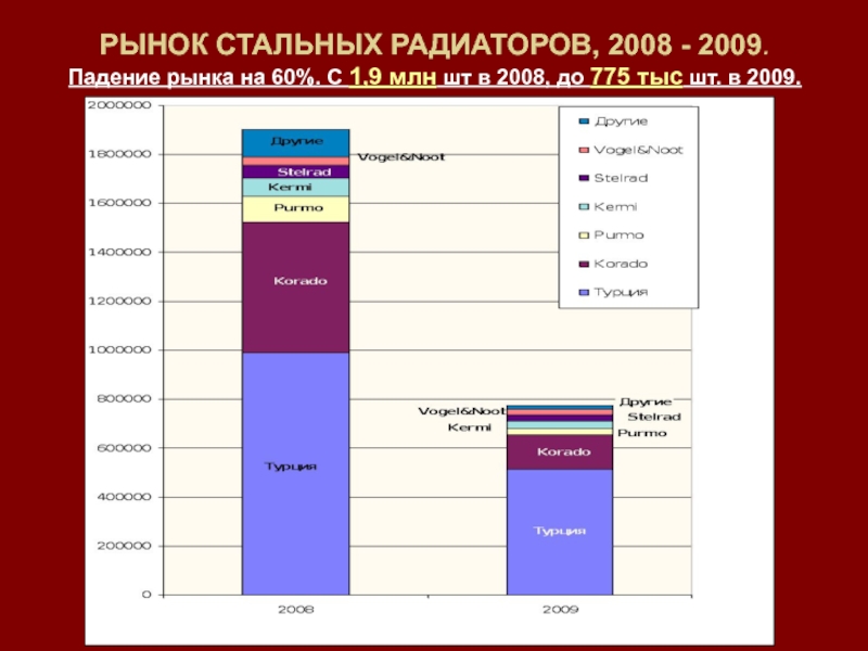 Слайд 2РЫНОК СТАЛЬНЫХ РАДИАТОРОВ, 2008 - 2009.