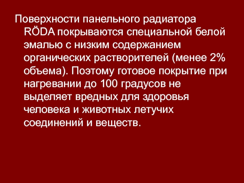 Слайд 9Поверхности панельного радиатора RÖDA покрываются специальной белой эмалью с низким содержанием