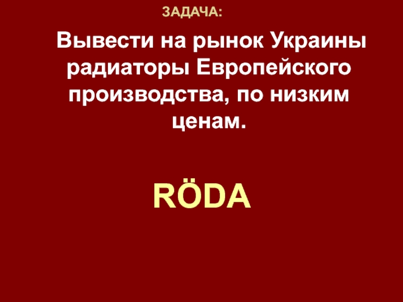 Вывести на рынок Украины радиаторы Европейского производства, по низким ценам.