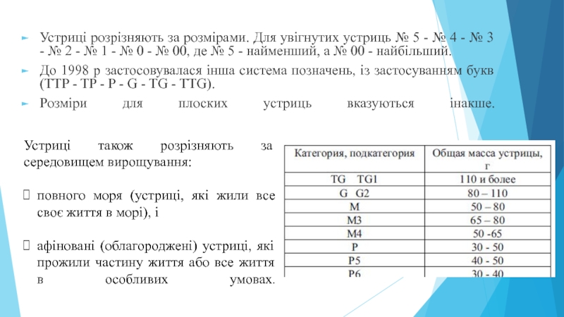 Слайд 5Устриці розрізняють за розмірами. Для увігнутих устриць № 5 - №