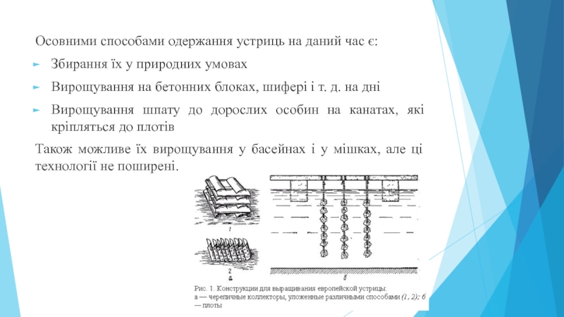 Слайд 19Осовними способами одержання устриць на даний час є: