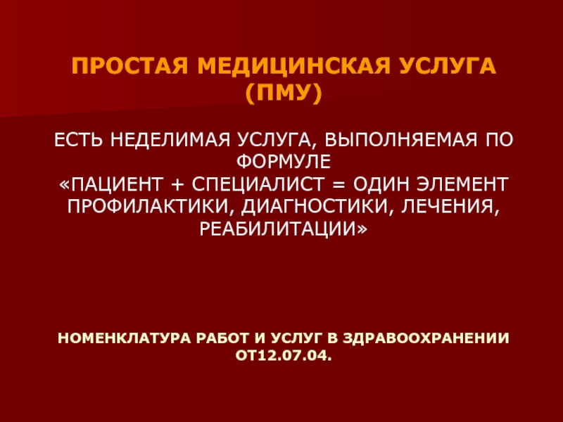 Слайд 12ПРОСТАЯ МЕДИЦИНСКАЯ УСЛУГА