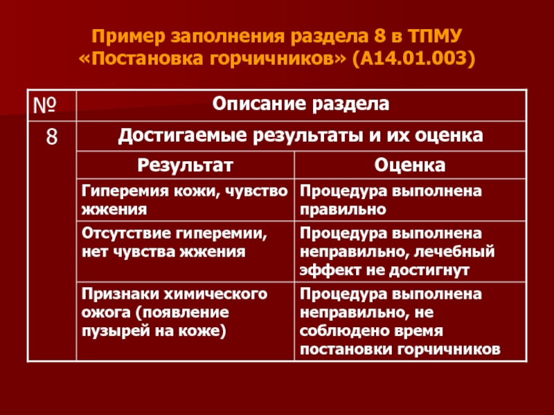 Слайд 18Пример заполнения раздела 4 ТПМУ «Измерение роста»