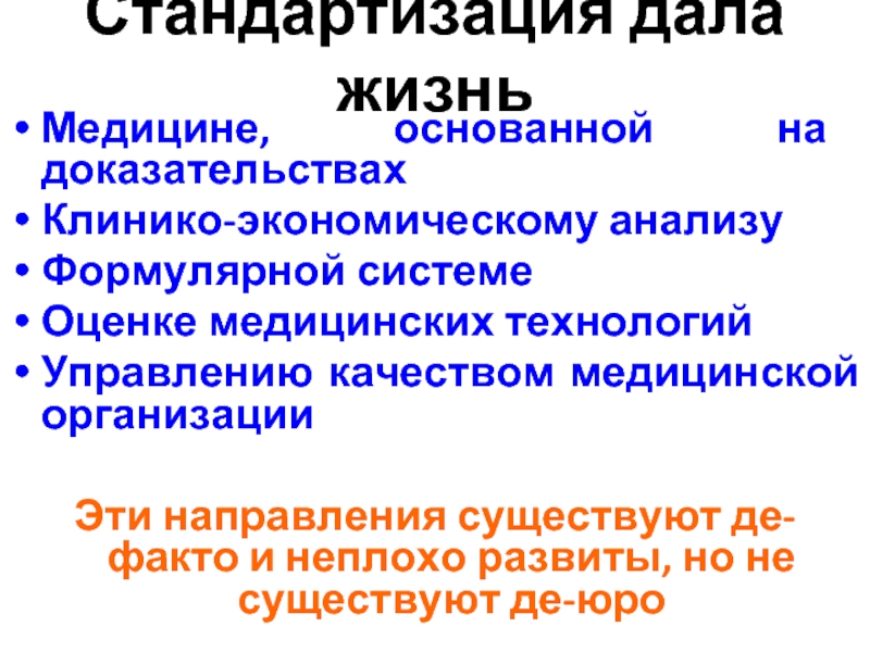 Система стандартизации в здравоохранении явялется стержнем дальнейшего развития здравоохранения как