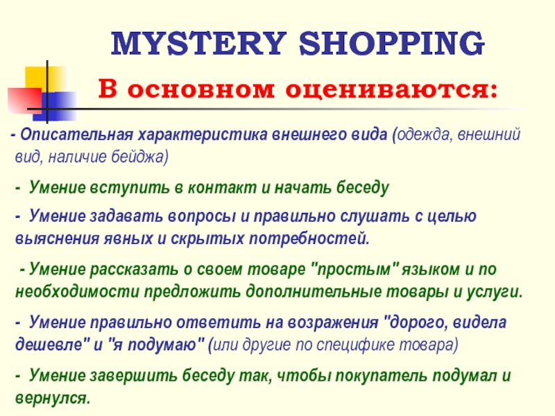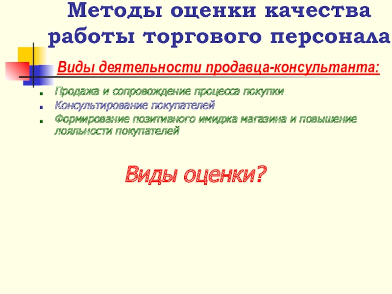 Методы оценки качества работы торгового персонала