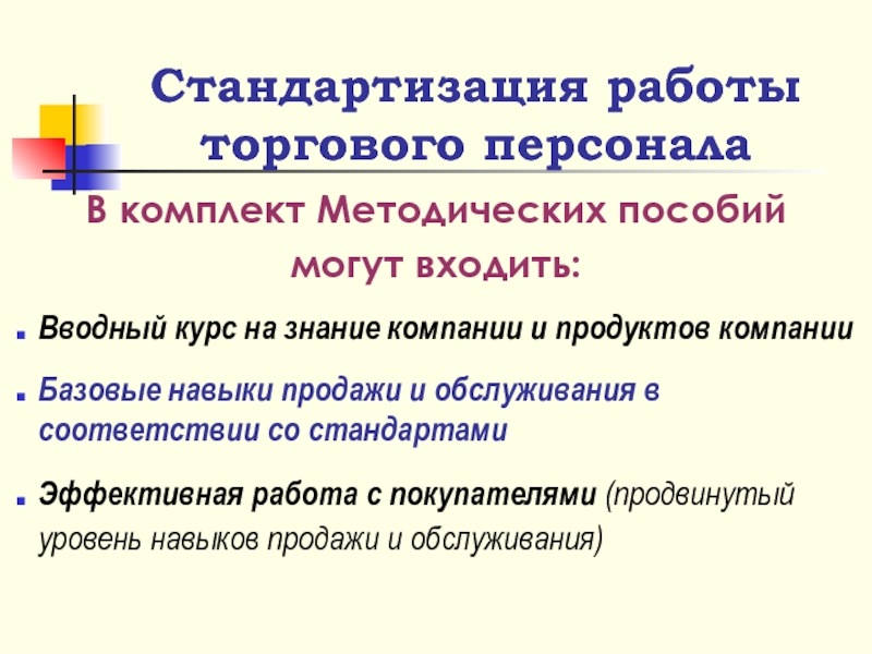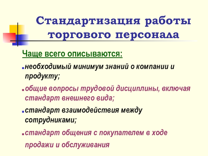 Стандартизация работы торгового персонала
