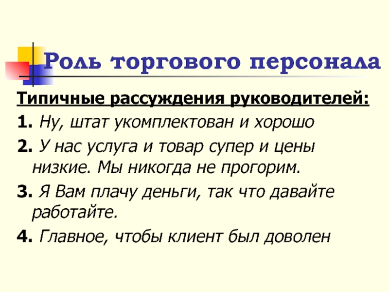 Роль торгового персонала