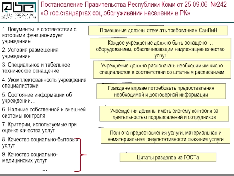 Каждое учреждение должно быть оснащено … оборудованием, обеспечивающим надлежащее качество услуг