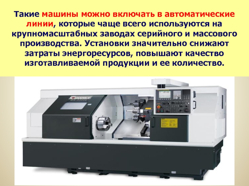 Слайд 16Такие машины можно включать в автоматические линии, которые чаще всего используются