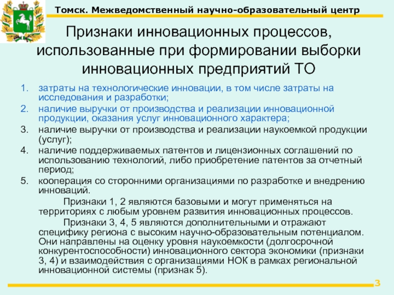 «Об инновационной деятельности в Томской области»