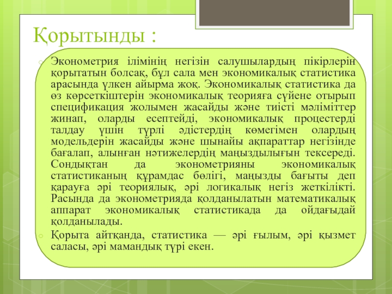 қоғам өмірінің сандық жақтарында болатын құбылыстарды меңгеретін және көп жылдық тарихы бар ерекше ғылым немесе білім саласы.