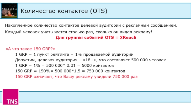Накопленное количество контактов целевой аудитории с рекламным сообщением.